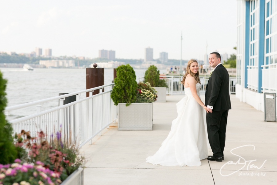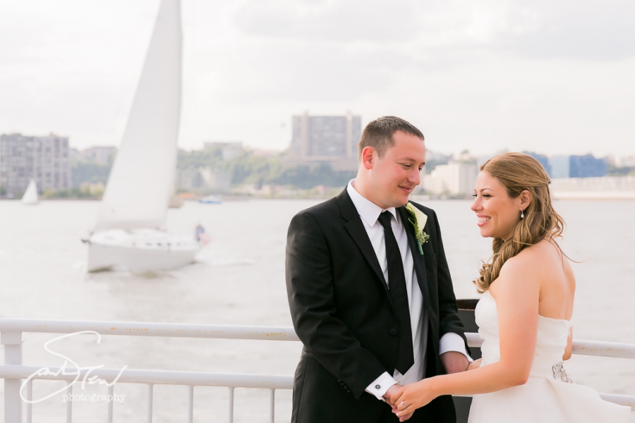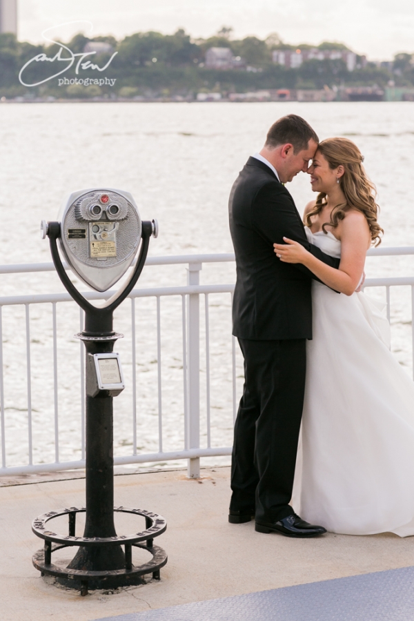 Amy & Brett planned a classic, elegant manhattan wedding at a wonderful venue, The Lighthouse at Chelsea Piers. I arrived early to scout the location for possible portraits in and outside the venue and was delighted to find that creatively there were lots of spots that appealed to me. One worry had been whether there would be time to do anything elsewhere but I found that we didn’t even need to venture further than the street to capture a healthy round of fun and creative portraits of this couple in their wedding attire! And of course for the family and wedding party pictures it made perfect sense to shoot in front of the lovely Chuppah and outside with the river in the background, particularly as the sun went down during cocktail hour this view became prettier and prettier. I was lucky enough to get to take the bride and groom out quickly for a few more shots both around sunset and again after dark once the lights were glittering across the Hudson. Highlights of this wedding included a fantastic ceremony performed by the wonderful Rabbi Uri Goren, and of course I am a big fan of Hank Lane’s Marcus Reid Band– they sure know how to rock a wedding reception! I am also pretty thrilled with the ring shot I came up with at this wedding– I’m always trying to do something creative and pretty with the rings and I love what I came up with here. I was so honored to shoot this lovely wedding and couldn’t be happier for this great couple! Congratulations, Amy & Brett!