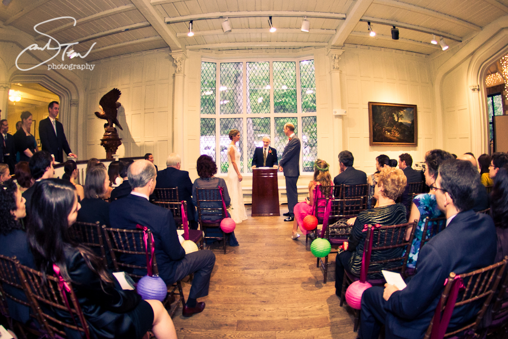 Beth and Michael both work in publishing, and make a really sweet couple. I was delighted to find that their venue, the Stamford Museum and Nature Center, was housed in a charming old mansion with beautiful surrounding grounds to inspire some portraits of the couple… I must say, I think the couple-portraits have become my favorite little part of shooting a wedding… people just look so gorgeous on their wedding day– the glow of happiness and the carefully selected finery combine with what is usually a really beautiful location lend themselves perfectly to capturing what I hope are going to be images that the couple will cherish and look at on mantles, walls, desk-frames, or in their wedding album for the rest of their lives… Despite the weather and Beth’s elegant high heels we managed to get a good little round of portraits outside right after their ceremony and then re-entered to find cocktail hour in full swing. I loved the colorful (multi-colored) decor (lanterns, mini-toy favors, flowers & antique tins on the tables, etc) that this couple had going on to work with their vintage typewriter keys they had selected as a reoccurring theme (I suspect because of the couple’s connection to books and publishing). The venue proved to be a beautiful spot to have a ceremony indoors and staff expertly maneuvered the guests between the various areas for ceremony, cocktails, reception, and dancing. They even had a nice little area for me to set up the photobooth during the reception– a good time was had by all… Congratulations, Beth & Michael! Your wedding was lovely!