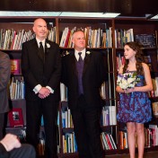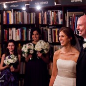 I loved shooting Chrissy & Tom’s sweet bookstore wedding this past Saturday– Housing Works Bookstore continues to be one of my favorite best-kept-secret wedding venues! And what a treat to shoot getting ready and first look / couple portraits with the couple at the stylish Mondrian Hotel just down Crosby Street. Chrissy was stunning– I didn’t even recognize her at first as I peered into the room expecting to see her on a chair with a makeup or hair artist working on her but it turned out they had finished early (unusual!) and she herself was opening the door for me! The emotion of the day finally hit her as we went to make a portrait of her by the window’s light and you could feel just how much love and excitement there was for this couple to wed. Ryan went outside to meet Tom and prepare him for the first look, which we did outside. I am quite taken with the courtyard they have there– check out the pretty shots of Chrissy & Tom under the lights they have strung up outside in front of the hotel– some of my favorites were shot right there. After a quick round of shots with them in the fabulous lobby area we did a portrait walk through some surrounding blocks on the way up to the Bookstore where we met their family for group shots before the ceremony. I love getting these out of the way before the ceremony so as to free the couple up to enjoy their cocktail hour with their guests right afterwards, rather than being whisked off and posed in a series of groups while everyone is wishing they could hug and congratulate them… Housing Works is such a warm and unique atmosphere for a wedding– officiant Stephen Dym did a lovely job with their ceremony and I love the way the florist’s work added elegance to the tables yet maintained the personality of the space with simple burlap runners on the long tables. After some sweet toasts the couple made their way to the dance floor where strings of edison lights hanging between the balconies (bonus shooting angles!) added a twinkly air of celebration. We concluded the evening with a quick night portrait outside on the cobblestones of Crosby Street. I was so honored to be a part of this wedding and I hope Chrissy & Tom will enjoy their photos as much as I enjoyed making them.