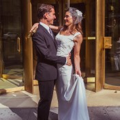 Nicole & James planned their wedding at the beautiful and charming Church of the Transfiguration on East 29th street in Manhattan, to be followed by sweet reception at Housing Works Bookstore in SoHo. I started the day in Nicole & James’ room at The Ace Hotel, where they were preparing just a block away from the church. I was thrilled when in a moment of pre-wedding stress I suggested Nicole get up and jump on the bed to shake it off and she agreed! This was something I’d dreamed of shooting for a long time and sure enough she looked radiant! We went outside to meet her groom and made our way to the church, stopping for a handful of portraits in spots I had scouted around the block. The Church of the Transfiguration, a.k.a. The Little Church Around The Corner, is historic and charming and full of beautiful details. I was taken thrilled to shoot this lovely ceremony and afterwards we did their family group portraits at the front of the church before the newlyweds headed outside to join guests on a bus down to SoHo. James is from Ireland originally and his family all came over for the wedding, so it was fitting that guests were treated to a doubledecker tour between the locations, complete with a storytelling guide. Highlights of the evening included a lively cocktail hour, a delicious buffet style dinner, and a series of witty and moving toasts that were capped off by speeches given by the bride and groom themselves in tribute to one another. It was so special being able to hear them share stories of how they met and fell in love with all their family and friends. I was so honored to capture such an important day in this incredible couple’s journey together. Congratulations to Nicole & James!