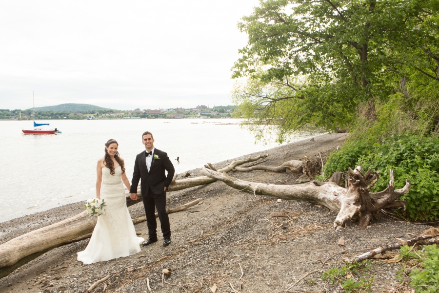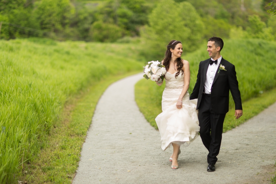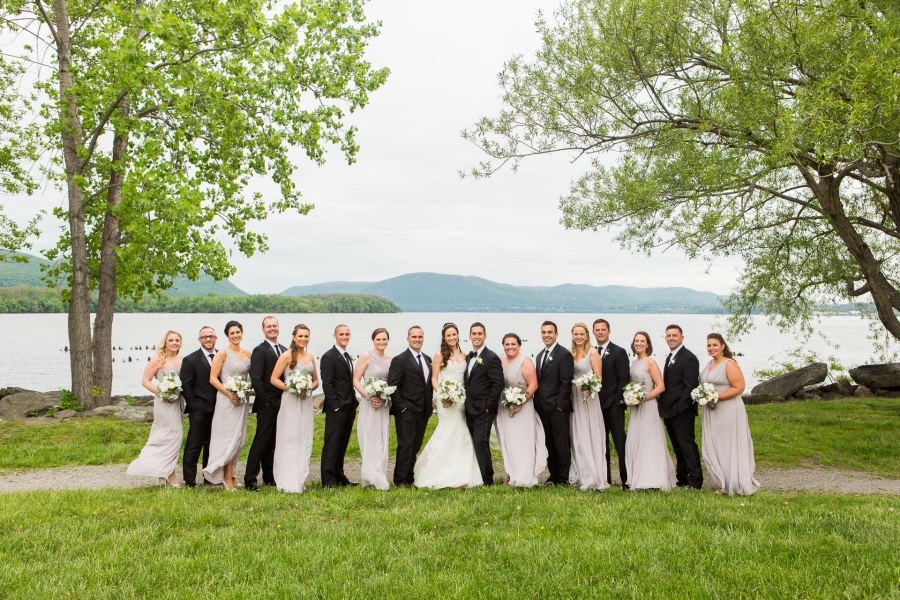 Jessica & John were married in a beautiful ceremony at St. Mary Mother of the Church in Fishkill, NY, a short drive away from their reception venue, The Roundhouse. Since the Roundhouse is also a fabulous hotel, they got ready there– I started the day with Jessica and her lovely bridesmaids in the penthouse overlooking a waterfall while my assistant shot with the guys getting ready in another room downstairs. Jessica and John chose to have their portraits taken after the ceremony in a nearby park (and what a gorgeous day we had after lots of rain-worry!) so we kept them from seeing each other as we moved from the hotel to the church. John was so happy to see her walking down the aisle towards him, and he has such a great smile. After a moving sermon by the priest and a communion ceremony for those gathered, these two lovebirds were presented as husband and wife and it was time to celebrate. The wedding party and family joined us at Long Dock Park on the Hudson where we captured all the group shots that were important as well as some sweet “just married” portraits of the couple! The park was so lush and pretty and I couldn’t believe some of the birds we saw casually hanging out in the trees there. We headed back to the Roundhouse to finish up the portraits with the extended family shots in front of the waterfall and then it was on to cocktail hour celebration. Highlights of the reception included an amazing performance by their band, The Nocturne, some sweet and hilarious toasts that shed light on this sweet couple’s history and how perfect they are for one another, and a fantastic crowd that was not afraid to live it up on the dance floor all night. I capped off the evening with a special night portrait utilizing one of my favorite new lighting tools for getting creative light painting… I ‘circled the couple with love’ as they froze for a long exposure and the results were cooler than I had even imagined! I couldn’t have been more thrilled to shoot for this amazing couple and they deserve every happiness– Congratulations Jes & John!