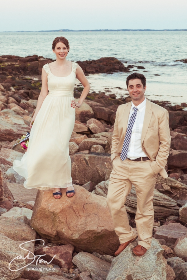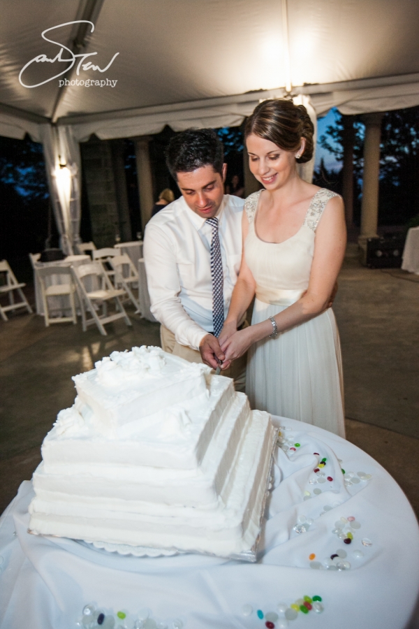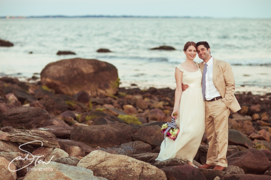 My thoughts on this wedding can be summed up in one word: wow! It is rare that we photographers get so much punch packed into one location– this park was gorgeous– it featured a mansion for the getting ready and cocktail/reception, a sweet little ampitheatre for the ceremony, and the options for portraits were almost overwhelming! After setting up their first look in a beautiful grape arbor type structure facing the Eolia Mansion’s gardens, we toured the grounds and within fairly quick walking distance I was able to get shots of Jesse & Jessica in tall grasses (rare!), amidst gorgeous giant trees, in front of a charming barn-like building, a tree with hearts/initials all over it, and later during the reception them down to the rocky shore for a portrait around sunset time. I could have shot portraits at this place all day, I barely even began to utilize the beautiful gardens, and didn’t have time to hit the sandy beach area… alas, next time! I hope to shoot at Harkness Memorial State Park again or at least take my husband there for a weekend getaway–what a relaxing and beautiful park! To make things even better Jesse & Jessica had a super sweet wedding that involved almost no “outside” vendors– in other words, everyone involved with their wedding (except the venue/caterer) was someone they knew personally! Jesse’s brother Kerk played the music for their ceremony, and their DJ, Christopher Torres, was a friend. The cake was made by the bride’s Grandfather, and the invitations were designed by Jessica’s sister (and maid of honor) Laura. Even I was an old friend of Jesse’s from Wesleyan. To top it all off, Jesse arranged to serenade his bride during the reception with an Al Green cover with his brothers performing as his backup band. So you can imagine with this DIY spirit what a warm-feeling celebration it was. Congratulations, Jesse & Jessica– you did it! Check out my favorites from the day below…