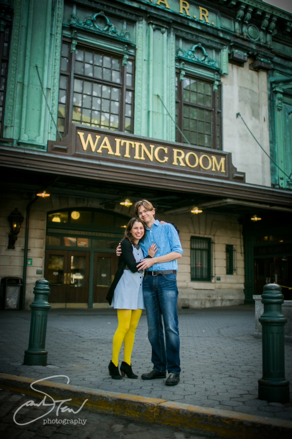Lauren and I have been friends since our years at Wesleyan University, where we were housemates for 2 years. She and Dano have been together roughly as long as I have been with my husband (almost 9 years now?!) and I couldn’t have been more thrilled to hear that they’ll be tying the knot next July up at the beautiful Fontainebleu Inn. I am so honored that they wanted me to shoot the wedding– Keith and I would have been there anyway so it’ll be even more fun for me to be the wedding photographer (I really love my work!) while I’m there. Since they have been living in Hoboken for years now it only made sense to do their engagement portraits there. I met them at the PATH station and we walked along the water’s edge grabbing scenes along the way, then we veered back through town to their apartment where we wrapped up the shoot with some cute shots of them having tea at their kitchen table and playing Bananagrams and hanging out with their sweet kittycat. I had a ball shooting with them, and I couldn’t be more excited for the wedding!
