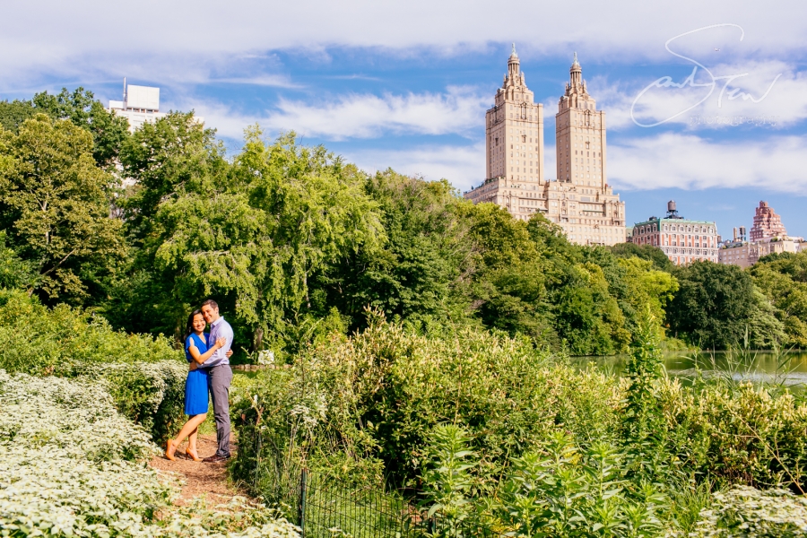 Lisa & Matt are to be married at The Harvard Club this coming October. They live and work in London so we snagged the earliest opportunity to do their engagement session here in NYC when they were in town for some wedding planning activities in early August. To avoid heat and crowds we planned our shoot for early in the morning and met up at the 72nd street 1/2 subway station to catch some pretty shots of the couple in this neighborhood they so enjoy as we made our way to Central Park. It was a glorious morning and not too hot at all, and we enjoyed walking around the park before it got flooded with people out to enjoy a summer day in the city. Lisa has a gorgeous smile and as you can tell from the pictures, Matt gets to see it a lot! What a fantastic pair these two make– I can’t wait to shoot the wedding this fall!