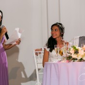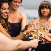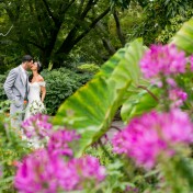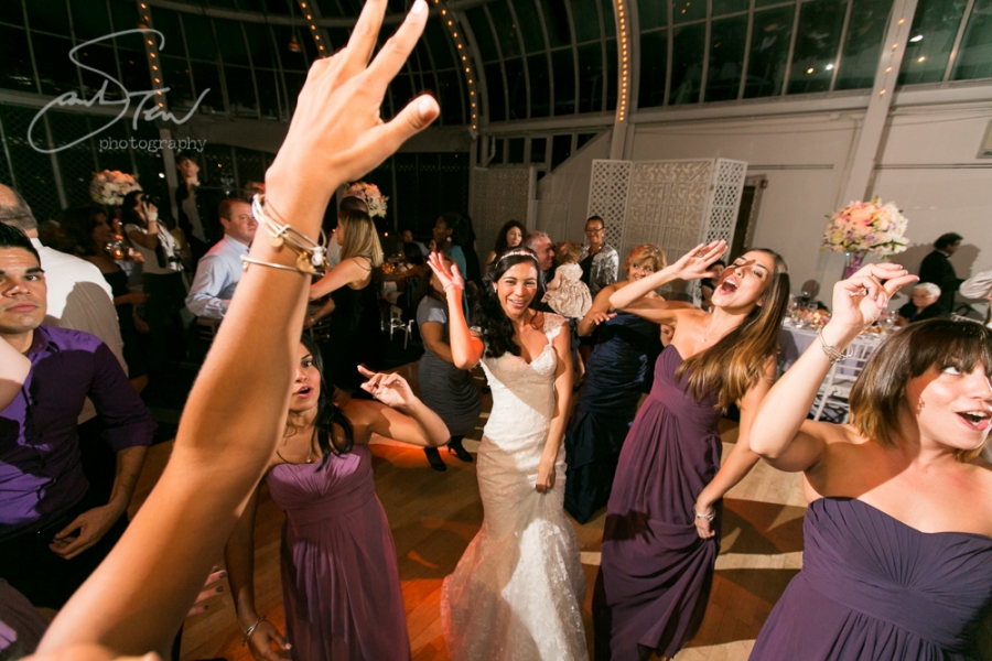 Melissa & Greg were wed on a Sunday under the most beautiful giant weeping willow tree in the Brooklyn Botanic Gardens in a moving ceremony featuring vows they wrote themselves. I started the day with Melissa and her bridesmaids getting ready over at a nearby hotel– check out their cute matching robes! When I saw the colorful chairs on the roof I just had to take them up there for a some group pictures before they got dressed for the wedding. Once the gals were ready we headed over to Brooklyn Botanic Garden to do a first look and portraits prior to the ceremony. Melissa and Greg had written letters to one another and I was honored to capture this sweet moment where she read his note before they saw each other. Other highlights of this beautiful wedding included a sweet candle-lighting during the ceremony, a great round of toasts to the bride and groom, dancing thanks to the great music courtesy of DJ Rob Kelly, and I was excited to take my new velvety green background out for a spin in their photobooth!