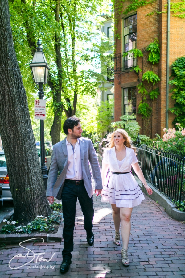 Hilary & Andrew are getting married this fall at Le Parker Meridian Hotel, just south of Central Park. Since they live in Boston they wanted to bring me up there for their engagement portraits, and boy did we get a great day for it! They picked me up from the train station and we went to a few choice spots– Beacon Hill, a nice historic district with cobblestone streets and beautiful old architecture, and Boston Public Garden, which was lovely and full of folks out to enjoy Memorial Day Weekend in the sunshine. To get a little variety (and because I didn’t want to miss out on the coastal element) we wrapped the session up near the Institute for Contemporary Art down by the water, where I could pose them near a boat or two! I was so glad I got to do this shoot on their home turf, I know the photos will be all the more meaningful to them because of it. Check out my favorites from the shoot…