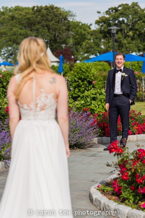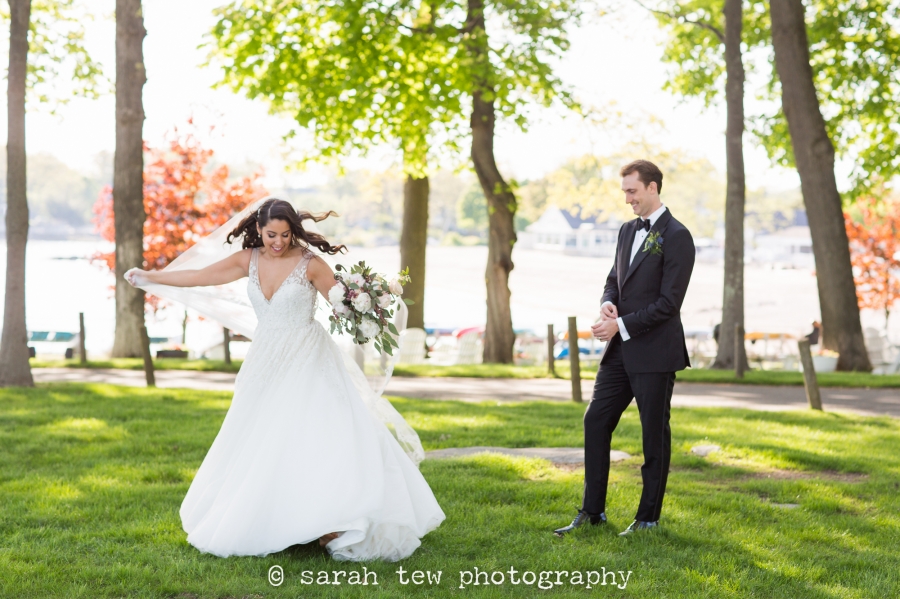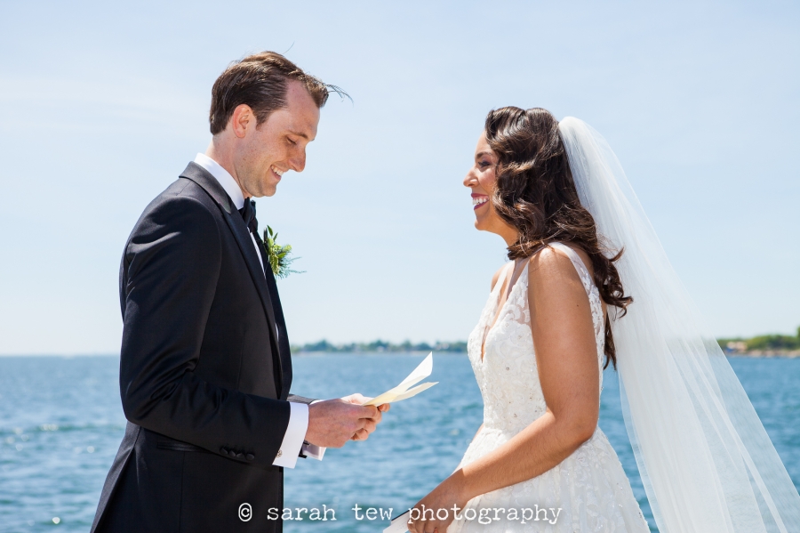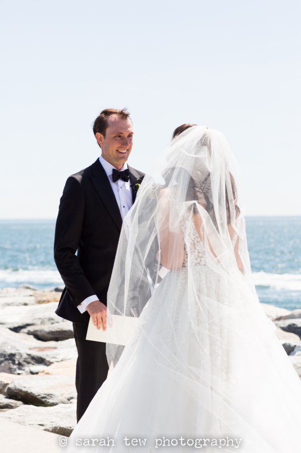 Molly & Matthew were married on a beautiful sunny Saturday in June at Beach Point Club in Mamaroneck, NY, just a short drive north from Manhattan. I started the day capturing Molly’s getting ready in the bridal suite there at the club, where she and her bridesmaids were enjoying a hair and makeup process together in some cute robes Molly had given them. My assistant photographer Somer was over with the guys while they got their gear on, and then it was off to the races! I loved Matthew’s reaction to Molly’s stunning gown at the first look– one of my favorite shots of the day is her laugh after he told her how hot she looked. After a quick set of couple portraits on the grounds of the club we walked over to the waterside for a round of group pictures with friends and family. Molly saved her veil to put on just before the ceremony, which was so lovely on the lawn behind the club with in this seaside setting. Guests were treated to an outdoor cocktail hour complete with a sushi bar, and the rest of the evening unfolded without a hitch. Highlights included an impressively choreographed first dance, the sweet and funny toasts from the bride’s sister and Matthew’s best man, and a delightful cake cutting with lots of laughs along the way. I was so honored to capture this beautiful wedding! Congratulations to Molly and Matthew!
