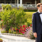 Groom and Groomsmen’s suits: Michael Kors Destiny Tuxedo