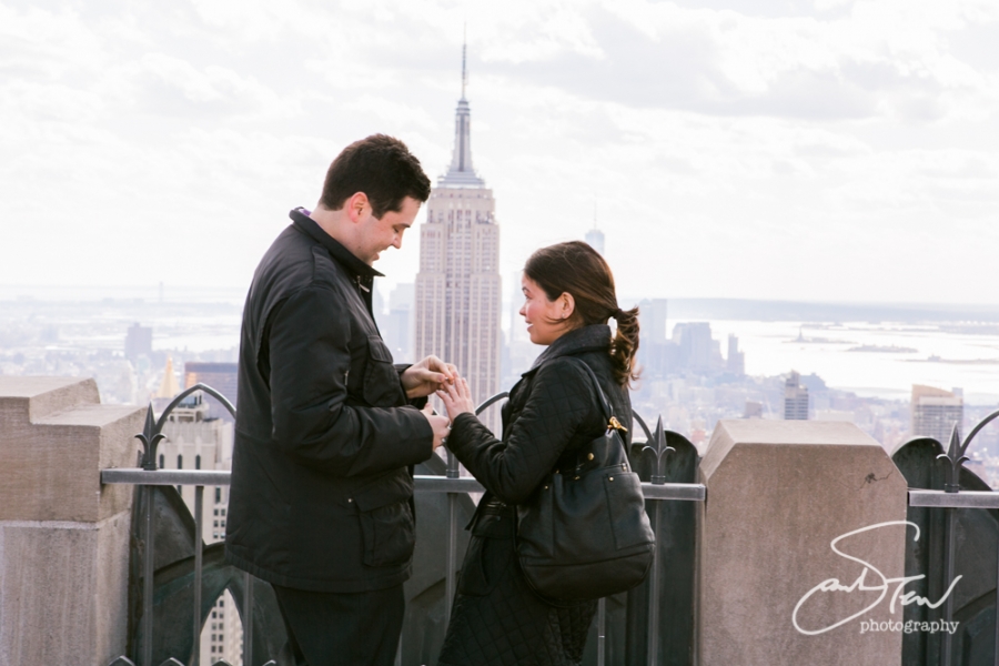 Brian planned a wonderful surprise proposal to his beloved Melissa at the Top of Rockefeller Center– but the surprise didn’t end there! He had arranged for her whole family to come down and meet them there too! After surrepticiously capturing the main event I introduced myself and then captured the family congratulating Melissa… we did some family group shots and I took Brian and Melissa for a quick round of ‘just engaged’ portraits as we exited Rockefeller Center and reunited with the family for one last group shot in front of the ice skating rink with the building up behind them. What a lovely saturday!
