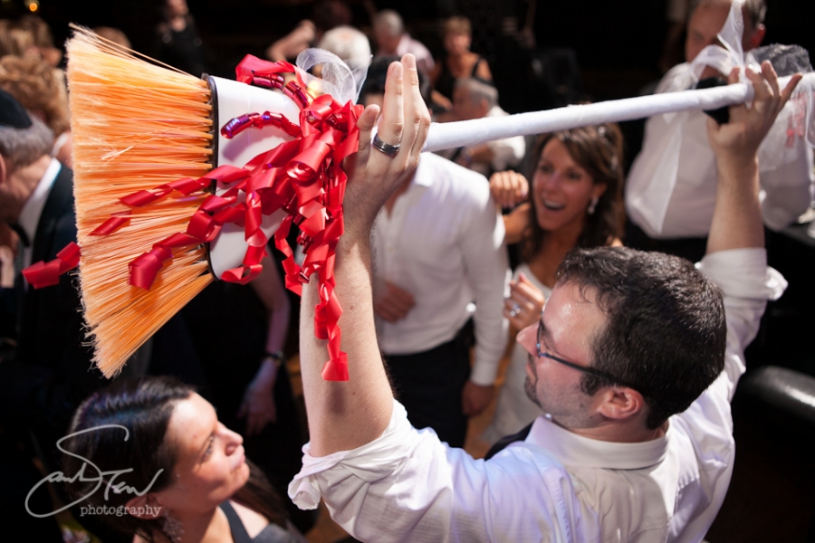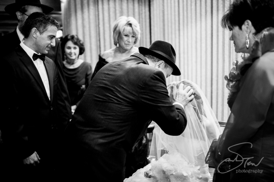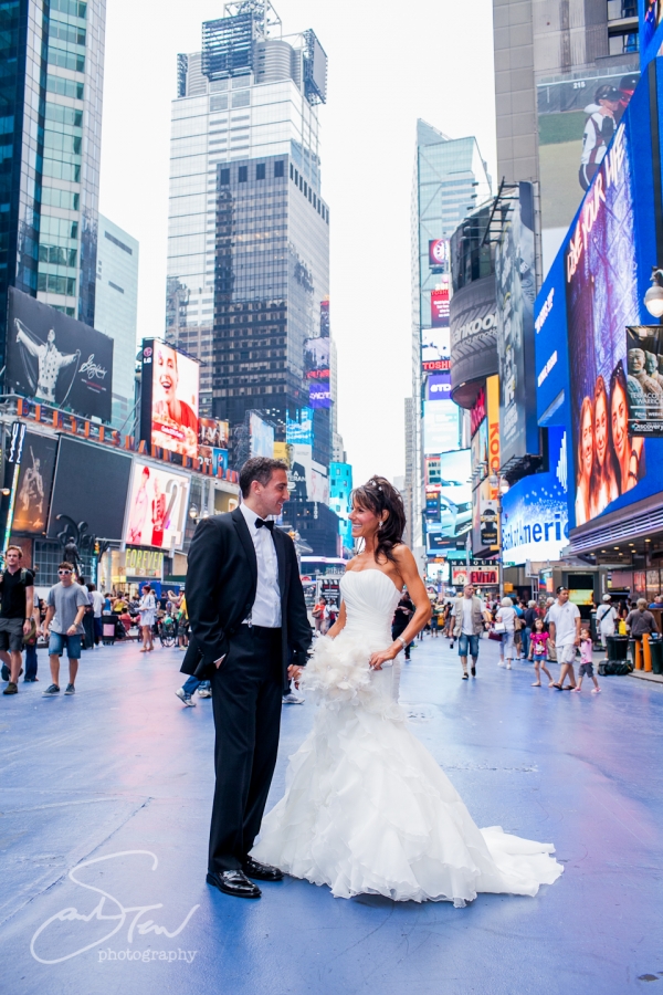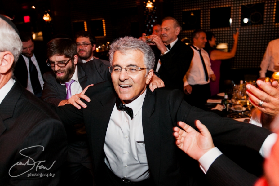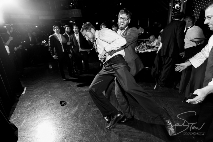 Steven & Michele were married in a unique and dramatic theatre-style space called the Edison Ballroom, just off Times Square. Theirs had to be the most lively and exciting Hora I’ve ever seen– but then again I’d never shot an orthodox Jewish wedding, and this had many elements from more traditional ceremonies, including a separation between the men and women dancing on two sides of the floor for much of the Hora! At a certain point they were both hoisted on top of tables (after a round of chairlifting also) and they threw the handkerchief back and forth over the curtain that split the dance floor. It was so fun to shoot this part of the reception, I just loved every minute of it… I love so many of the shots I got on the women’s side– Michele was so full of joy, her face was amazing during this dance. Meanwhile the men’s side was as frenetic as a mosh pit at one point, there was such physical group dancing going on, it was awesome to behold. I could go on for a while about what a unique space Edison Ballroom was, but I will let the photos speak for themselves. After they got dressed Jeff and I escorted Steven and Michele to Times Square separately to set up their first look, and then we did a quick handful of couple portraits before heading back to the Ballroom (just as it started to rain!) for family and wedding party portraits, the Ketubah signing and ceremony, etc. Thanks to Jeff & Nick for the excellent 2nd shooting and assistance.Another highlight involved the cake cutting– these two have a really fun relationship and it showed in their attempts to get cake all over one another. Michele was radiating such a pure happy glow all day, you couldn’t help but smile just looking at her. I was honored to be a part of this lovely celebration. Congratulations, Steven & Michele!