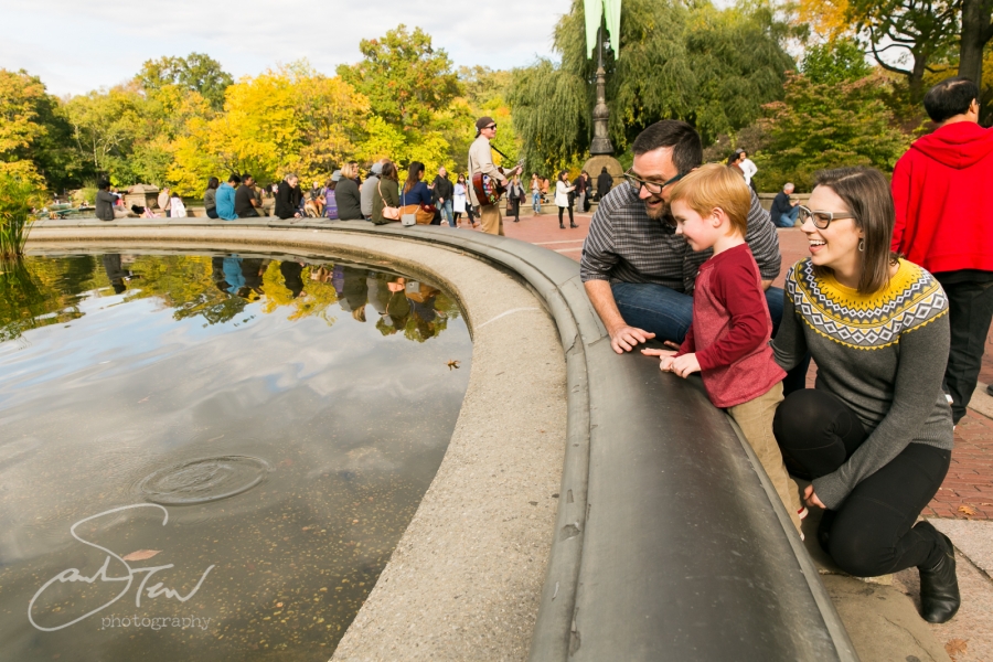 Since moving to Seattle, my dear wedding clients Amy & Andrew have now been back to NYC several times with their wonderful son, EJ– each time I’ve been lucky enough to have a shoot with them somewhere in the city- first was Brooklyn Bridge Park, then last time we did Bryant Park. I’ve been shooting this sweetheart since he was in the womb– in fact for this shoot Amy & Andrew requested that we revisit the area in Central Park where we had done their maternity / anniversary shoot! I loved catching up with this fun family and seeing how their baby boy has grown– he’s so full of personality! Highlights of EJ’s exploration of Central Park included looking at the boats and ducks in the pond, finding and throwing pretty fall leaves, sitting up high on a tree branch, going through a tunnel, enjoying the park performers, making a wish in the fountain, and eating a NYC pretzel! Check out our sweet shoot at Central Park in the midst of fall’s beauty!